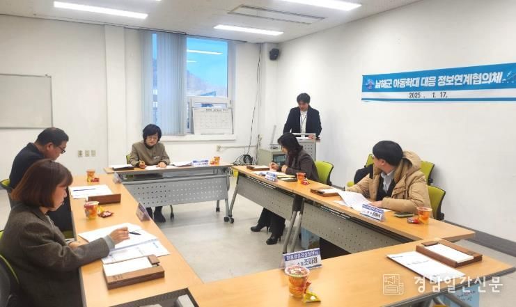 경남일간신문 | 남해군은 지난 17일 종합사회복지관 회의실에서 학대피해 아동의 신속하고 촘촘한 보호체계 마련을 위해 ‘2025년 제1차 아동학대 대응 정보연계협의체’ 간담회를 개최했다.