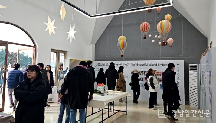 경남일간신문 | 남해관광문화재단이 독일마을 광장 여행라운지에서 열고 있는 ‘포용의 독일마을(부제: 기억과 만남의 공간을 만나다)’ 특별 전시가 관광객과 지역민들에게 인기를 끌고 있다.