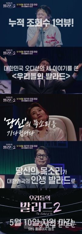오디션 프로그램의 명가 SBS와 국내 최고 매니지먼트사 SM C&C가 손잡고 다시 한 번 발라드 열풍을 일으킬 ‘우리들의 발라드’ 시즌2는 올 하반기 방송된다.