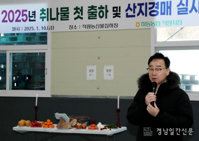 경남일간신문 | 하동군은 지난 10일 오후 1시 하동농협 적량지점 산지유통센터에서 2025년 취나물 첫 출하와 함께 초매식을 진행했다고 밝혔다.