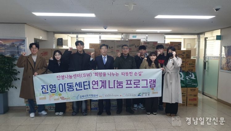 경남일간신문 | 김해시도시개발공사는 설 연휴를 앞둔 지난 16일 김해시 진영읍 취약계층 아동들을 대상으로 '아동센터 연계 나눔 프로그램' 행사를 가지고 나눔 물품을 전달했다.