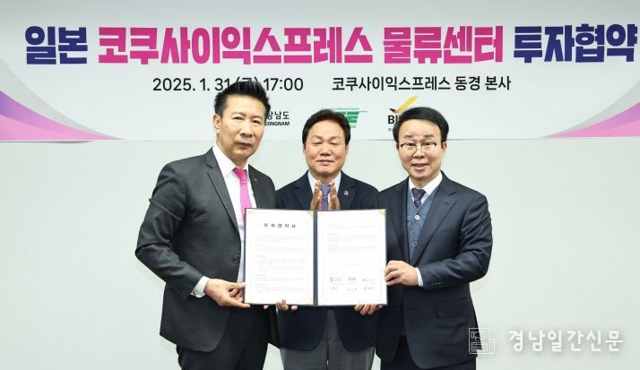 경남일간신문 | 박완수 도지사는 31일, 일본 도쿄에 위치한 일본 종합물류기업 코쿠사이익스프레스(KSE) 본사를 찾아 진해신항 배후단지 내 물류센터 신축을 위한 투자협약을 체결했다.