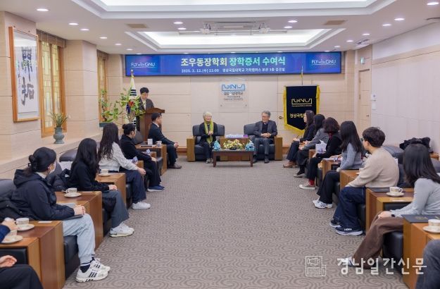 경남일간신문 | 경상국립대학교는 2월 12일 오전 11시 가좌캠퍼스 대학본부 접견실에서 ‘2024학년도 2학기 조우동장학회 장학증서 수여식’을 개최했다.