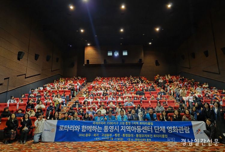 경남일간신문 | 국제로타리 3590지구 고성·통영1지역 로타리클럽(대표 마영철)은 지난 21일 통영롯데시네마에서 통영시 지역아동센터 12개소와 다함께돌봄센터 1개소를 이용하고 있는 아동 280여명을 초청해 영화관람을 진행했다.