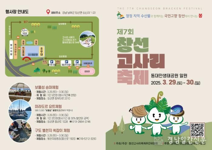 경남일간신문 | 봄의 신선한 기운을 가득 담은 ‘제7회 창선고사리축제’가 오는 3월 29일부터 30일까지 양일간 동대만생태공원 일원에서 펼쳐진다.