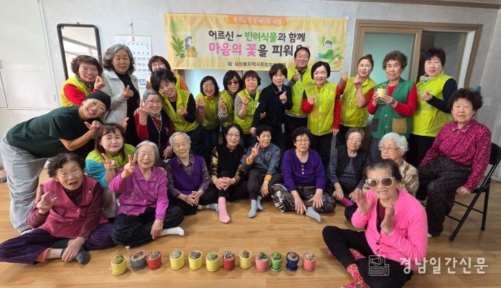 경남일간신문 | 양산시 삼성동지역사회보장협의체는 지난 11일 신기주공아파트 경로당에서 홀몸어르신들을 위한 ‘반려식물과 행복한 동행’사업을 실시했다.