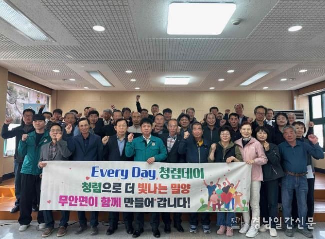 경남일간신문 | 밀양시 무안면은 25일 무안면 체육회와 함께 지역사회에 청렴 문화를 확산하기 위한‘EVERY DAY 청렴데이’결의대회를 가졌다.