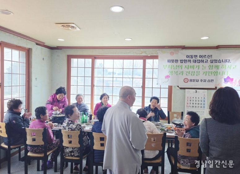 경남일간신문 | 이동면 행정복지센터는 남해 용문사 주지 승원스님이 이동면 마을을 순회하며 어르신들께 점심 식사 대접을 하고 있다고 밝혔다.