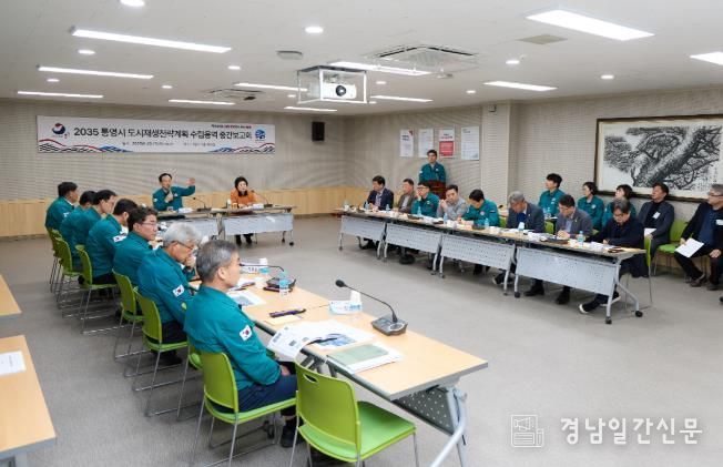 경남일간신문 | 통영시는 지난 1일 통영시청 제1청사 회의실에서 천영기 통영시장, 경남도의회 의원, 통영시의회 의원들 및 관련 부서 국·과장 등 17명이 참석한 가운데 ‘2035 통영시 도시재생 전략계획 수립 용역 중간보고회’를 개최했다.
