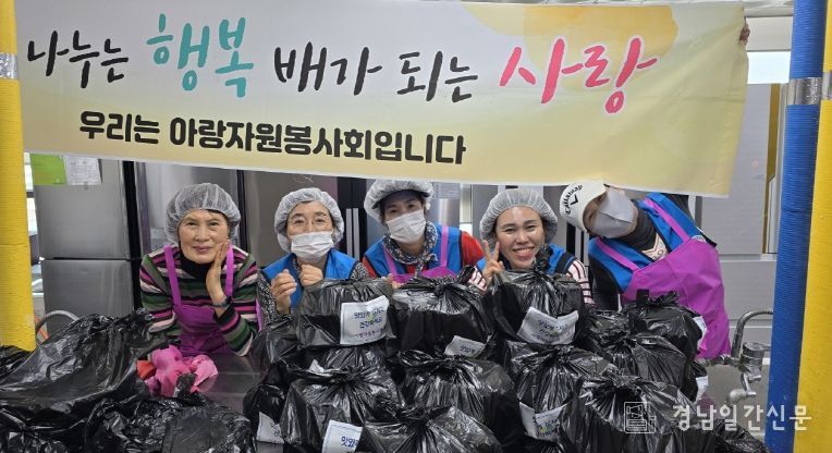 이날 아랑자원봉사회 회원들은 소고깃국과 어묵볶음을 정성껏 마련해 저소득 홀로 어르신 등 취약 세대 30가구에 전달하고 건강과 안부를 살피며 따뜻한 나눔을 실천했다.