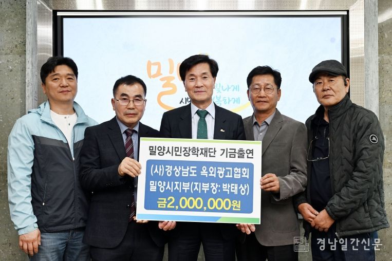 한편, (사)경상남도 옥외광고협회 밀양시지부는 지역 내 17개 옥외광고업체로 구성된 단체로, 2019년부터 매년 장학기금 200만원을 꾸준히 장학재단에 전달하며 지역 학생들을 향한 따뜻한 관심과 사랑을 이어가고 있다.