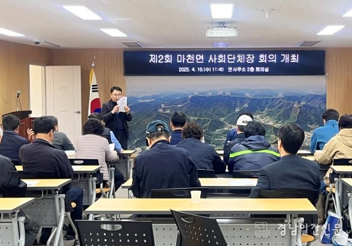경남일간신문 | 함양군 마천면사무소는 4월 16일 오전 11시 면사무소 2층 회의실에서 마천면 사회단체장 20여 명이 참석한 가운데 ‘제2회 마천면 사회단체장 회의’를 열었다.
