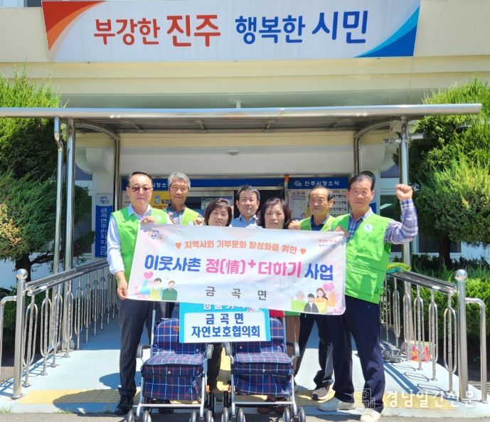 경남일간신문 | 진주시 금곡면 자연보호협의회(회장 김영천)는 23일 관내 보행이 불편한 어르신 가정을 방문하여 30만 원 상당의 실버카를 전달했다.