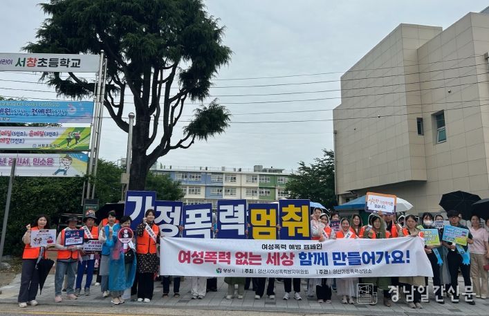 경남일간신문 | 양산시 여성폭력방지위원회는 24일 서창서장 일원에서 시민들을 대상으로 여성폭력 추방 캠페인을 펼쳤다.