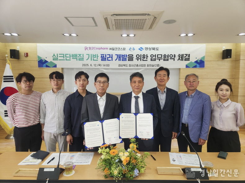 경남일간신문 | 기능성 화장품 및 피부 의료기기 전문기업 (주)필코코스팜(대표 정훈철)이 경북 상주시 잠사곤충사업장에서 경북잠사곤충사업장과 손잡고 차세대 바이오소재 개발에 본격 나선다. 양 기관은 지난 6월 12일 **누에고치를 포함한 곤충 유래 생물자원을 활용한 고기능성 화장품 및 필러 공동 개발을 위한 업무협약(MOU)**을 체결하고, 본격적인 기술협력과 제품 상용화에 착수했다고 밝혔다.