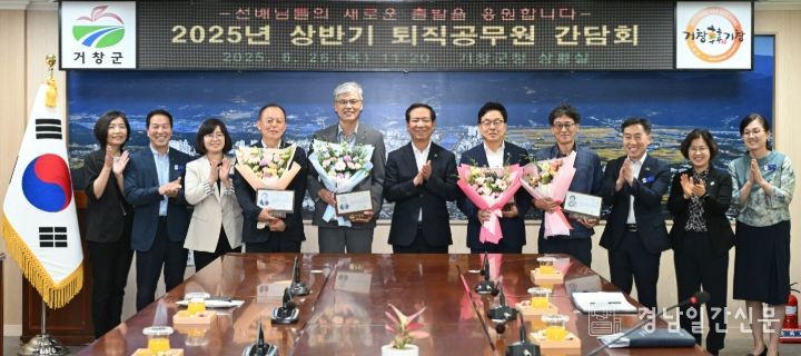 경남일간신문 | 거창군은 26일 군청 상황실에서 2025년 상반기 퇴직공무원 간담회를 개최하고, 30여 년간 공직에 몸담으며 지역사회 발전과 공공서비스 향상에 기여한 퇴직공무원들에게 공로패를 수여하고 감사와 축하의 마음을 전했다.