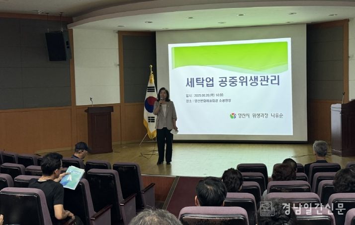 경남일간신문 | 양산시는 지난 26일 양산문화예술회관 소공연장에서 (사)한국세탁업중앙회 경상남도지회 주관하에 세탁업 기존 영업주 70여명을 대상으로 ‘세탁업 기존영업주 공중위생교육’을 실시했다.