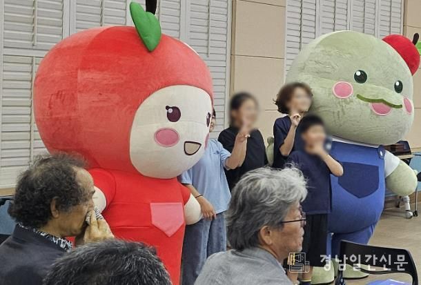 경남일간신문 | 거창군은 지난 1일 거창군청 대회의실에서 열린 민선 8기 3주년 기념행사 및 성과보고회에서 거창군 관광캐릭터 ‘거복이와 사각이’의 인형탈을 처음으로 외부에 공개했다.