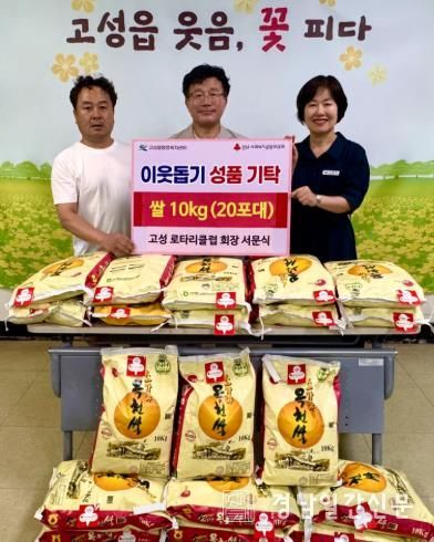 경남일간신문 | 고성 로타리클럽의 신임 회장으로 취임한 서문식 회장과 회원 일동은 7월 1일 고성읍행정복지센터를 방문해 취임 축하 화환 대신 받은 쌀 200kg을 어려운 이웃들에게 전달해달라며 기탁했다.