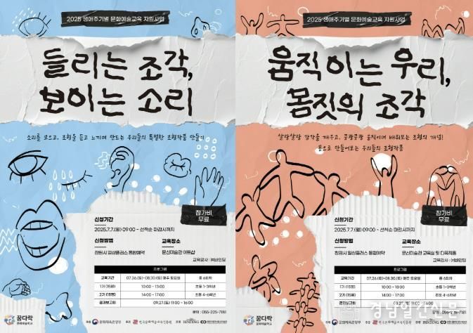 ‘꿈다락 문화예술학교’는 ‘소리(Sound)’와 ‘몸(Body)’이라는 주제로, ▲ 들리는 조각, 보이는 소리 ▲ 움직이는 우리, 몸짓의 조각 등 2개의 프로그램으로 운영된다. 참여 학생들은 이번 프로그램을 통해 자신이 느끼는 작가 문신의 조형성을 청각, 신체 감각을 활용하여 표현해 보며 감각을 확장하는 경험을 할 수 있다.