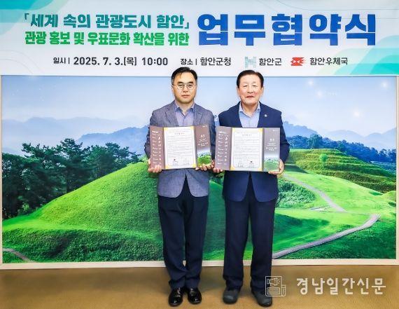 경남일간신문 | 함안군은 함안우체국(국장 이민호)과 3일 군수실에서 ‘세계 속의 관광도시 함안’ 홍보 및 우정사업 활성화를 위한 업무협약을 체결했다.