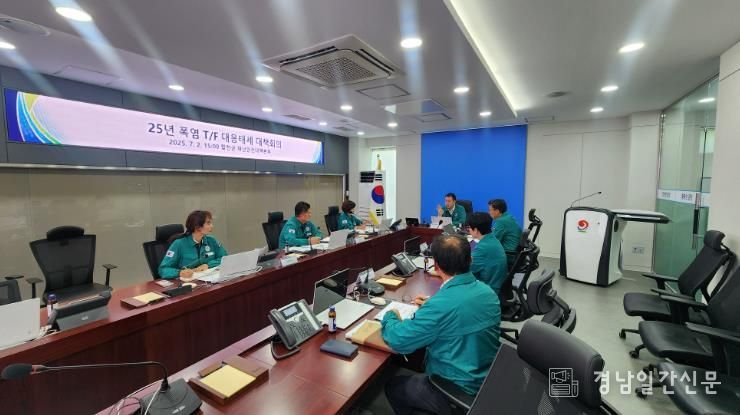 경남일간신문 | 합천군은 7월 2일 수요일 오후 3시 재난안전대책본부 상황실(합천군 CCTV관제센터 3층)에서 극심하고 장기화된 폭염에 대응하기 위하여 T/F회의를 개최하고 부서별 추진상황을 공유하며, 본격적인 폭염 대응체계 강화에 나섰다.