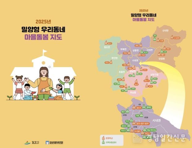 경남일간신문 | 밀양시는 방과 후 돌봄이 필요한 아동과 학부모가 다양한 돌봄 서비스를 쉽게 찾아보고 이용할 수 있도록 ‘2025년 밀양형 우리동네 마을돌봄 지도’ 홍보물을 제작해 지역 내 21개 초등학교에 배부했다고 밝혔다.
