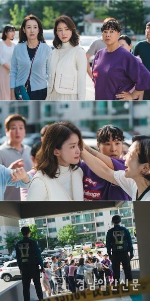 이와 함께 웅성거리는 주민들에게 둘러싸인 공미리(이시영 분), 추경자(정영주 분), 전지현(남기애 분)은 한 여성과 살벌한 신경전을 벌이며 시선을 강탈한다.