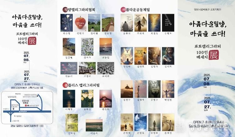 이번 전시에서는 밀양의 자연과 문화, 역사 속 풍경을 배경으로, 시민 100인이 삶의 메시지를 붓글씨로 표현한 포토캘리그라피 작품 100여 점을 선보인다.