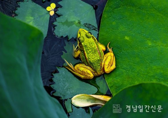 연잎 위로 날아다니는 다양한 잠자리들 밑으로 호시탐탐 잠자리들이 내려앉기만을 기다리고 있는 금개구리들의 시선 속에 텃새가 되어버린 청둥오리들이 어린 새끼들을 데리고 유유히 헤엄치며 연잎 사이로 숨는다.