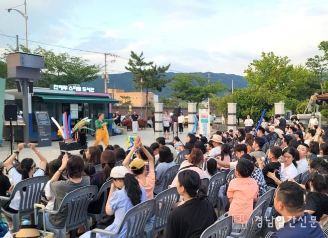 경남일간신문 | 창원특례시 진해도서관은 9일 오후 6시부터 진해루 스마트도서관 앞에서 개최한 야외 행사를 지역 주민들의 큰 호응 속에 성황리에 마무리했다고 밝혔다.