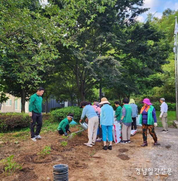 이번 사업은 경상남도새마을회(회장 윤원섭)가 추진하는 ‘아름다운 마을 가꾸기’공모사업의 일환으로, 주민이 직접 참여하여 꽃과 나무를 심고 마을 환경을 정화함으로써 마을 공동체 의식을 높이기 위해 기획됐다.