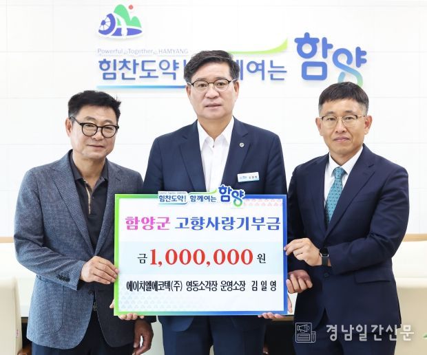 김일영 소장은 “나고 자란 고향 함양을 늘 자랑스럽게 생각하며 타지에서도 항상 응원하고 있었다”라며, “작은 정성이지만 고향 발전에 조금이나마 이바지할 수 있게 되어 매우 기쁘다. 앞으로도 함양에 대한 애정과 관심을 이어가겠다”라고 기부 소감을 밝혔다.