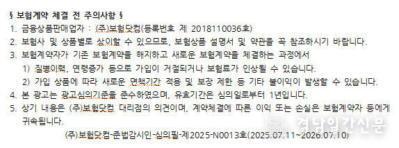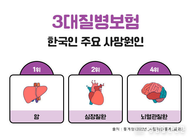 경남일간신문 | 한국인의 주요 사망원인중에 암, 뇌혈관질환, 심혈관질환은 흔히 3대질병이라 일컬어지며 살아가면서 가장 먼저 대비해야 하는 중대질병으로 항상 강조되고 있다. 이들 질병에 미리 대비하기 위해 가입하는 것이 진단비보험인데, 이러한 3대질병진단비를 중점으로 보장하는 보장성보험이 3대진단비보험 이다. 3대질병진단비보험은 각각의 질병에 주목해서 보장하기도 하지만, 나에게 맞는 추가 특약을 잘 골라서 가입한다면 종합건강보험으로도 충분히 활용도가 높다.