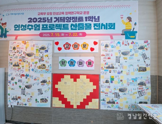 경남일간신문 | 거제시립수양도서관은 오는 7월 15일부터 22일까지, 거제양정초등학교 1학년 학생들이 참여한 인성교육 프로젝트 ‘고마운 양정마을’ 전시를 개최한다.