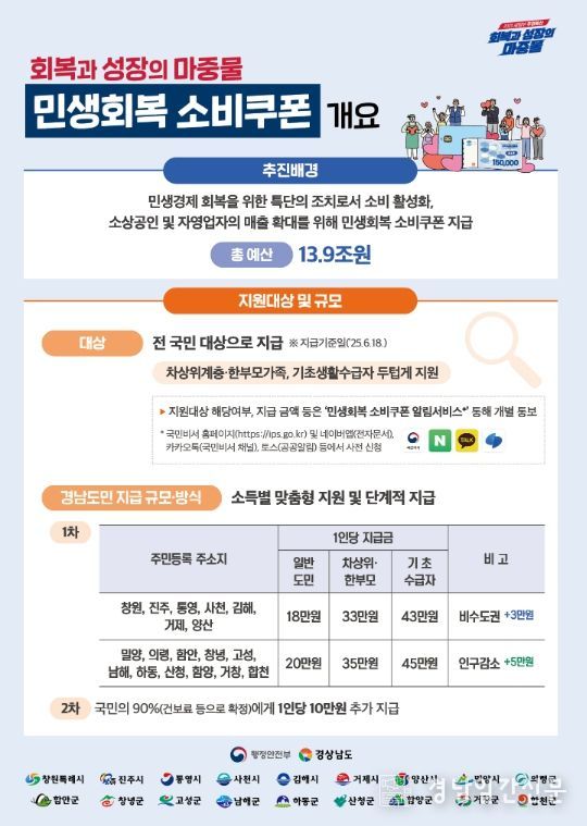 경남일간신문 | 함양군은 민생경제 회복을 위해 소비를 촉진하고 소상공인의 매출을 확대하기 위한 민생 회복 소비 쿠폰 1차분을 오는 21일부터 9월 12일까지 신청을 받아 지급한다고 밝혔다.
