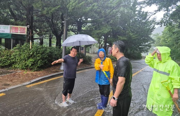 폭우가 쏟아지는 가운데 나동연 양산시장은 19일 새벽 5시 30분부터 직접 현장점검에 나섰다. 나 시장은 내원사 인근과 수위가 높아진 삼계교, 양산천 둔치, 남양산IC 등 주요 우려 지점을 차례로 점검했다. 현장점검을 마친 나 시장은 재난안전대책본부 상황실로 출근해 실시간 기상현황과 피해상황을 보고받으며 현장 대응 직원들을 격려했다.