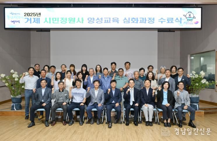 경남일간신문 | 거제시는 지난 19일 거제시 농업기술센터 대회의실에서 경상국립대학교 및 시 관계자가 참석한 가운데 ‘2025년 제2기 시민정원사 심화과정 양성교육 수료식’을 개최했다.