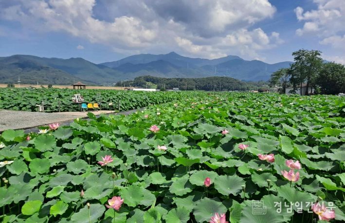 경남일간신문 | 밀양시는 2009년부터 부북면 가산리 일대에 62,241㎡(약 18,000평) 규모의 연꽃단지를 조성해 도시민들에게 볼거리를 제공하고 있다. 단지에는 미꾸라지, 청개구리, 올챙이, 수련 등 다양한 수생 생물이 서식하고 있어 아이들의 생태학습장으로도 인기다.