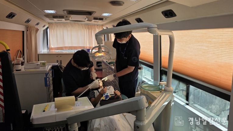 이날 경남구강센터는 이동 진료버스를 이용해 복지관의 장애인 회원 40여 명에게 구강검진, 스케일링, 불소도포 등의 치과 서비스를 제공했다.