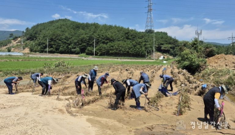 경남일간신문 | (사)전국 이·통장연합회 거창군지회(회장 송강훈)는 지난 24일 최근 집중호우로 큰 피해를 입은 산청군 신안면 일대 수해지역을 찾아 긴급 자원봉사활동과 구호 물품 전달을 실시했다.