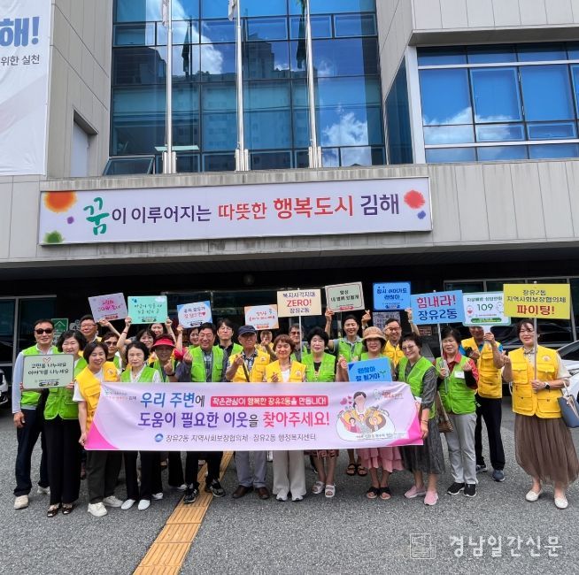 경남일간신문 | 김해시 장유2동행정복지센터는 지역사회보장협의체 30여명의 위원과 지난 25일 장유2동 행정복지센터 및 대동피렌체앙코르사거리 일원에서 자살 예방 및 복지사각지대 발굴을 위한 합동 캠페인을 실시했다고 밝혔다.