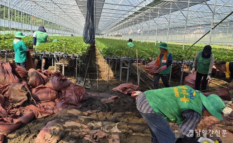 이번 폭우로 하동군 전역에서는 27일 기준 총 155건의 피해가 발생했으며, 피해액은 약 230억 원에 이른다. 공공시설 피해는 110건(96억 원), 사유시설 피해는 45건(134억 원)으로 집계됐고, 농경지 피해는 총 142.2ha에 달하며 이 가운데 딸기 등 원예작물 피해가 절반 이상을 차지했다. 특히 전국 6대 딸기 주산지이자 하동군 딸기 재배면적의 91.9%를 차지하는 옥종면은 1246동(71.6ha)의 시설하우스가 침수되어 재배 기반 자체가 흔들릴 위기에 놓였다.