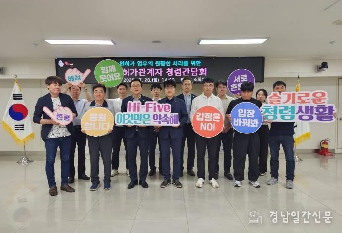 시는 정기적으로 인·허가 분야별 청렴 간담회를 개최해 인·허가 처리 과정에서 발생하는 애로사항과 건의사항을 논의하고 다양한 부조리 사례를 공유하며 청렴 실천 의지를 다지고 있다.