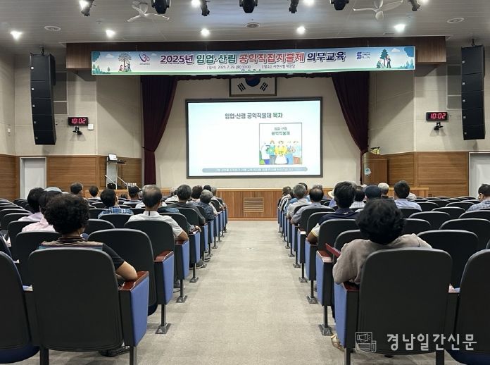 경남일간신문 | 사천시는 2층 대강당에서 2025년 임업·산림 공익직접지불제 임업인 집합교육을 진행했다고 29일 밝혔다.
