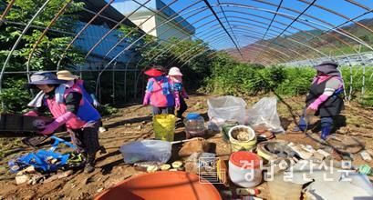 창고에서 떠내려온 농기구, 가재도구의 토사제거, 바닥청소, 비닐하우스 내 쓰레기 수거 등 폭우 피해를 입은 생활개선회원님을 위로하고 생활용품을 전달하며 일상생활에 복귀할 수 있도록 두 팔을 걷어붙이고 구슬땀을 흘렸다.