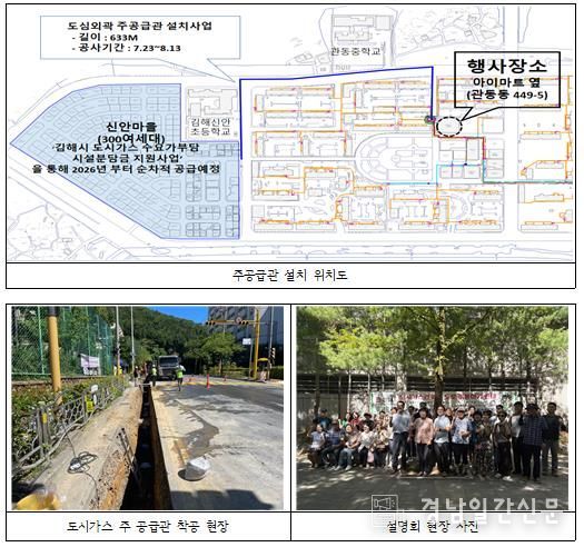 경남일간신문 | 김해시는 지난 29일, 2025년 도심 외곽 도시가스 주 공급관 설치 사업의 일환으로 관동동 434 일원에 도시가스를 보급하는 주 공급관 설치 착공을 기념해 설명회를 개최했다고 밝혔다.