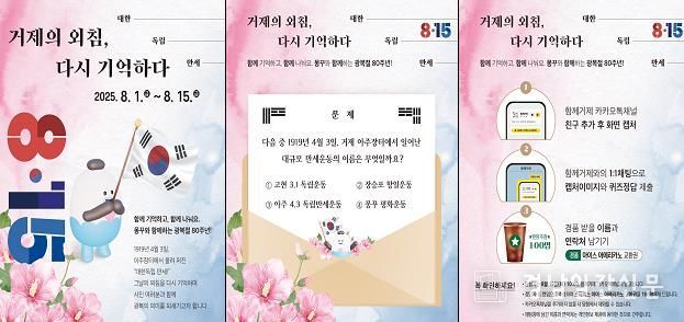 거제시 소식지 ‘함께거제’는 광복절 80주년을 맞아, 시민들과 함께 광복의 의미를 되새기고, 거제의 항일 역사에 대한 관심과 애정을 높이기 위한 참여형 퀴즈 이벤트를 진행한다.