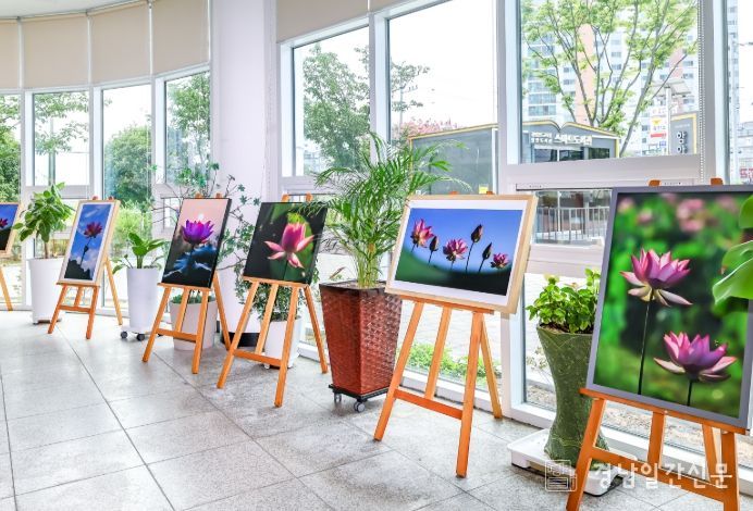 경남일간신문 | 연꽃과의 인연을 사진으로 담아온 농초 김종옥의 ‘因連(인연)’사진전이 지난 8월 1일부터 31일까지, 함안도서관 갤러리 아라에서 열린다