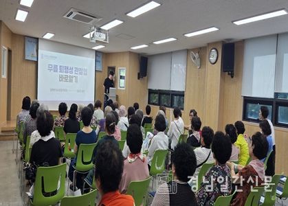 경남일간신문 | (재)김해시복지재단 김해시구산사회복지관(관장 한치희)은 지역주민의 질병예방과 건강증진을 위해『무릎통증 예방과 관리』주제로 특강을 진행했다고 7일 밝혔다.